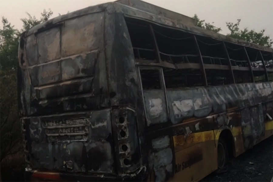 మెదక్ హైవేపై కాలిబూడిదైన ప్రైవేట్ బస్సు..